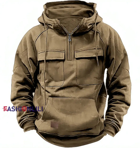 Men's Casual Solid Color Multi-Pocket Hoodie