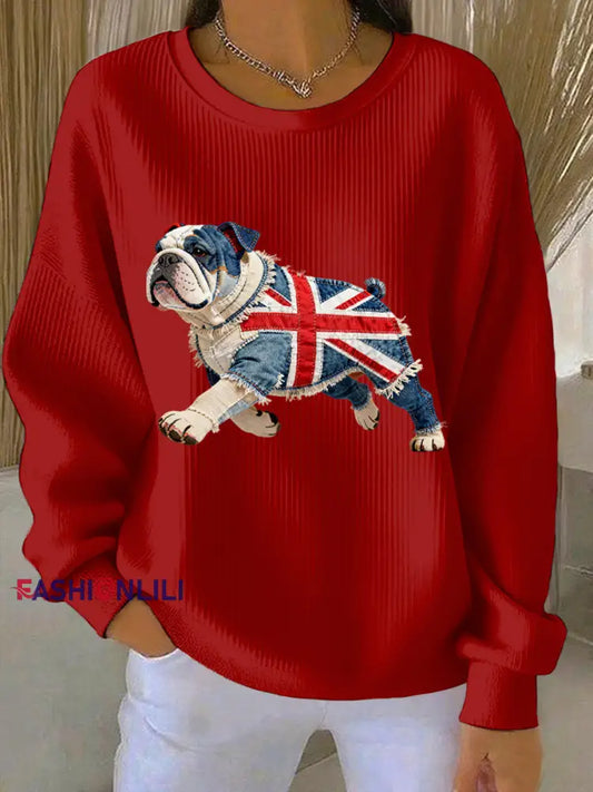• Women’s British Style Bulldog Print Casual Sweatshirt White / S