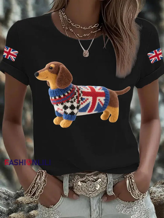 Women's UK Flag Dachshund Printed T-shirt