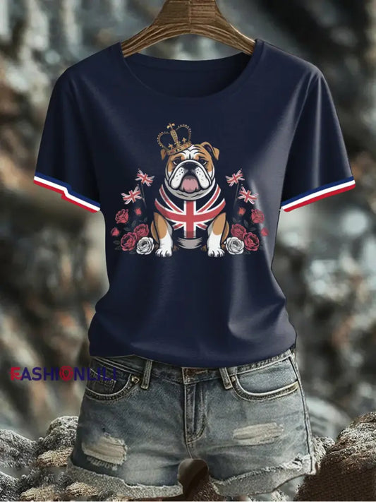 Women's UK Flag Schnauzer Printed T-shirt