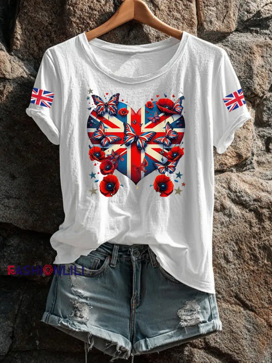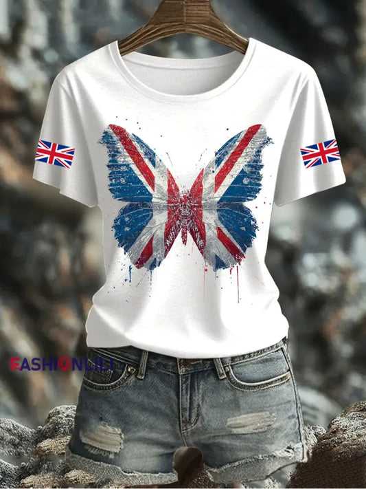 Women's UK Flag Butterfly Printed T-shirt