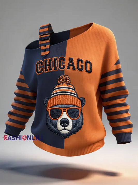 • Women’s Let’s Go Chicago Print Football Fans Gameday Casual Sweatshirt Orange / S