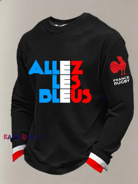 Men's France Rugby Waffle Long Sleeve T-Shirt
