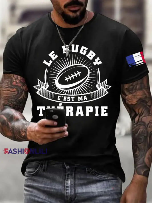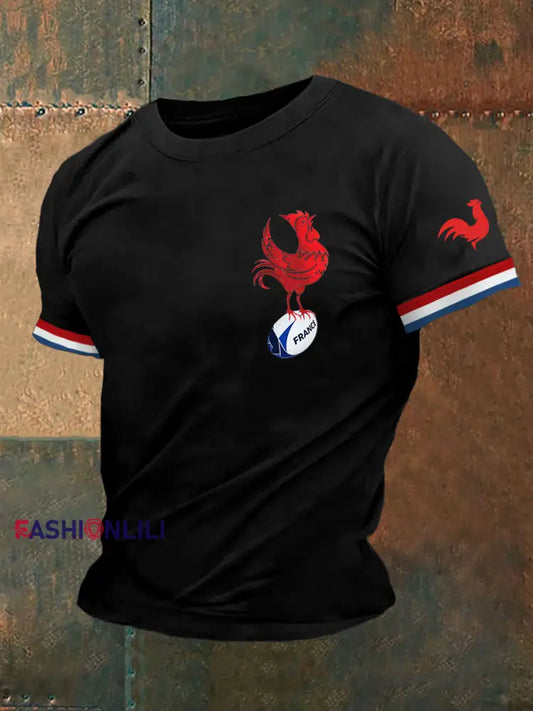 Men's French Rugby Cheering Printed T-Shirt