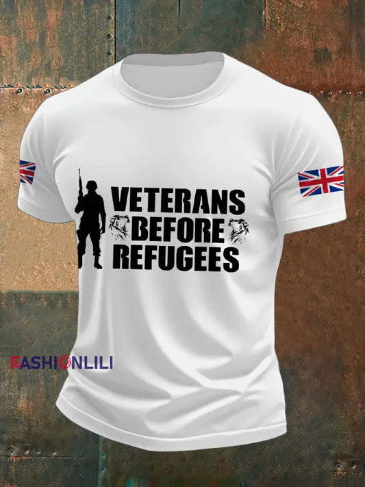 Men's UK Immigration Veterans Before Refugees Printed T-shirt