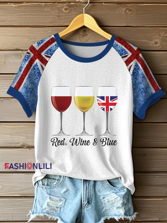Women's Union Jack Wine Glass Round Neck Short Sleeve T-shirt