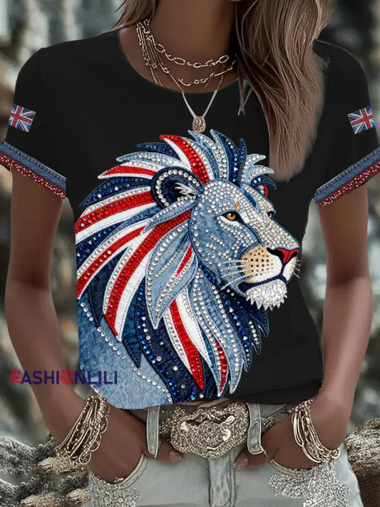 Men's UK Flag Lion Printed T-shirt