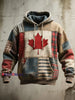 Men's Canadian Flag Inspired Patchwork Art Vintage Washed Hoodie