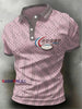 Men's French Rugby Print Pink Business-Style Sports Polo Shirt