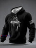 Men's Jesus Lion Print Casual Checkered Hoodie