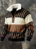 Men's Retro Color Block Print Casual Fur Collar Zip-up Hoodie
