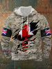Men's UK Flag Camouflage Skull Print Casual Hoodie