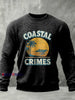 Retro Coastal Crime Casual Waffle-Weave Crewneck Pullover