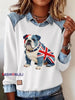 Women's British Style Bulldog Print Casual Top