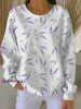 Women's Casual Purple Floral Ribbed Round-Neck Sweatshirt