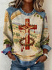 Women's Cross Faith Print Denim Patchwork Top