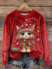 Women's Cute Cat Christmas Lights Embroidered Cozy Plush Sweatshirt