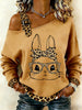 Women's Cute Leopard Bunny Print Easter Casual Off-Shoulder Top
