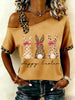 Women's Cute Leopard Bunny Print Easter Casual Short-Sleeve Off-Shoulder Tee