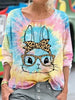 Women's CuteEaster Cute Leopard Bunny Print Casual Long-Sleeve Top