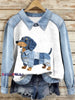 Women's Denim Patchwork Dachshund Pattern Sweatshirt