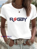 Women's French Rugby Print Minimalist White T-Shirt