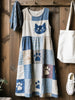 Women's Lovely Cat Pattern Patchwork Art Linen Blend Dress