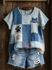 Women's Lovely Cat Pattern Patchwork Art Linen Shirt