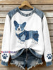 Women's Lovely Corgi Pattern Denim Patchwork Waffle Sweatshirt