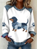Women's Lovely Dachshund Dog Pattern Denim Patchwork Sweatshirt