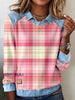 Women's Pink Plaid Pattern Patchwork Art Sweatshirt