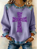 Women's Purple Ribbon Cross Print Casual Sweatshirt
