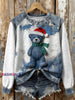 Women's Retro Christmas Denim Bear Print Sweatshirt