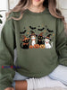 Women's Round Neck Halloween Black Cat Pumpkin Embroidery Loose Long Sleeve Top