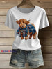 Women's Scottish Highland Cattle Printed Vintage Fashion Loose Short Sleeve T-Shirt