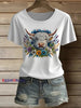 Women's Scottish Highland Cattle Printed Vintage Fashion Loose Short Sleeve T-Shirt