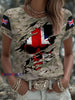 Women's UK Flag Camouflage Skull Print Casual Tee