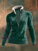 Women's Viking Totem Printed Zipper Lamb Wool Long Sleeve Top