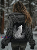 Women's Viking Wolf Tree Of Life Pattern Gradient Cardigan Knit Jacket