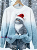 Women's Vintage Christmas Cat Printed Flannel Sweatshirt