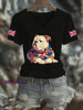 Women's Vintage England Flag Casual Printed V-neck T-shirt
